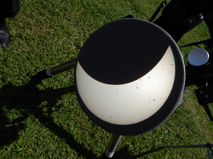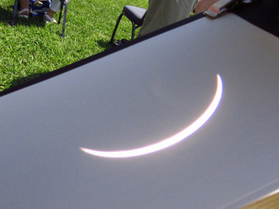 A strainer provides numerous mini images of the eclipse. |
